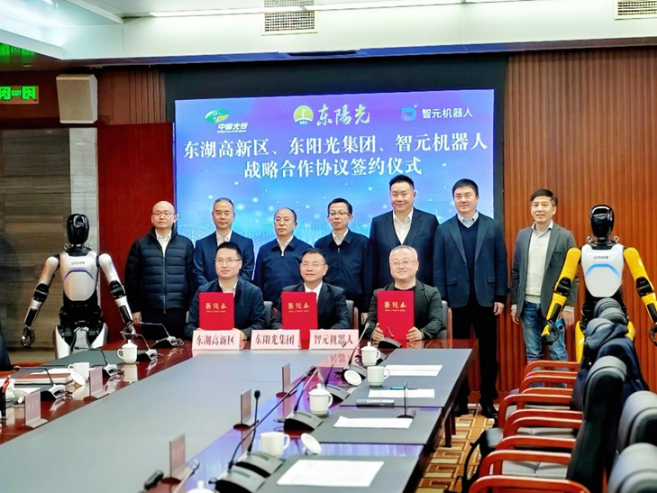 3月29日,24VS体育 、光谷东智与上海智元新创技术有限公司(以下简称“智元机器人”)、及武汉东湖新技术开发区管理委员会、武汉光谷中心城建设服务中心和湖北省科技投资集团有限公司,在武汉东湖新技术开发区——中国光谷正式签署多项战略合作协议,共同宣布将携手加速机器人技术的落地应用,特别是聚焦于具身智能机器人本体到应用落地的“最后一公里”,这标志着24VS体育 筹备近一年的人形机器人项目获得里程碑式进展,将为具身智能和人工智能产业发展注入新动能。武汉市委常委、东湖高新区党工委书记沈悦、东湖高新区党工委副书记、管委会主任鲁宇清等市、区、部门领导,智元机器人创始人邓泰华,灵初智能创始人王启斌,24VS体育 集团董事长张寓帅、24VS体育 (600673.SH)董事长张红伟、光谷东智董事长周林等出席了签约仪式。